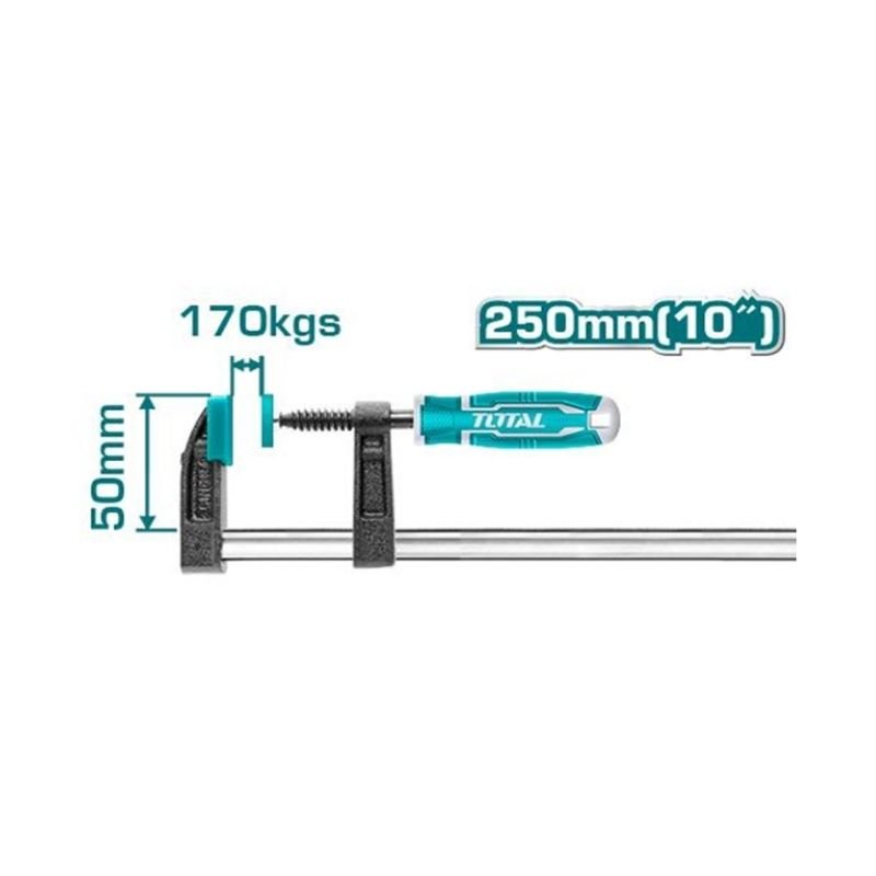 Clamp size: 50250mm. Max clamp force: 170KG. Thickness and width of iron ruler: 515mm. Diameter of screw thread: 11mm. Packed by paper card.