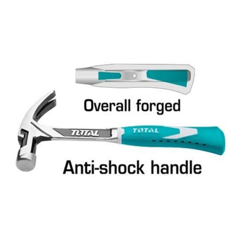 TOTAL style handle, all-steel drop-forged claw hammer, 16oz/450g, heat-treated, packed by paper card.