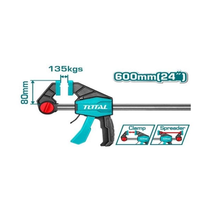24’’ QUICK BAR CLAMP DESCRIPTION: Clamp size: 80600mm. Max clamp force: 135KG. Thickness and width of iron ruler: 618mm. Packed by label.