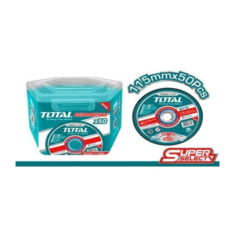 50pcs/set 115mm (4-1/2″) × 1.2mm (3/64″) × 22.2mm (7/8″) flat centre cutting disc for metal and inox, 50pcs per shrink, packed by plastic box.