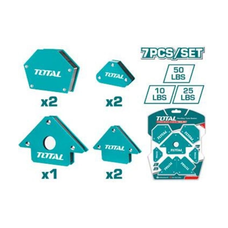 7pcs Magnetic Welding Holder Set: 2 × 3″ 2 × 4″ 2 × 3″ Angle Multi Holder 1 × 4″.