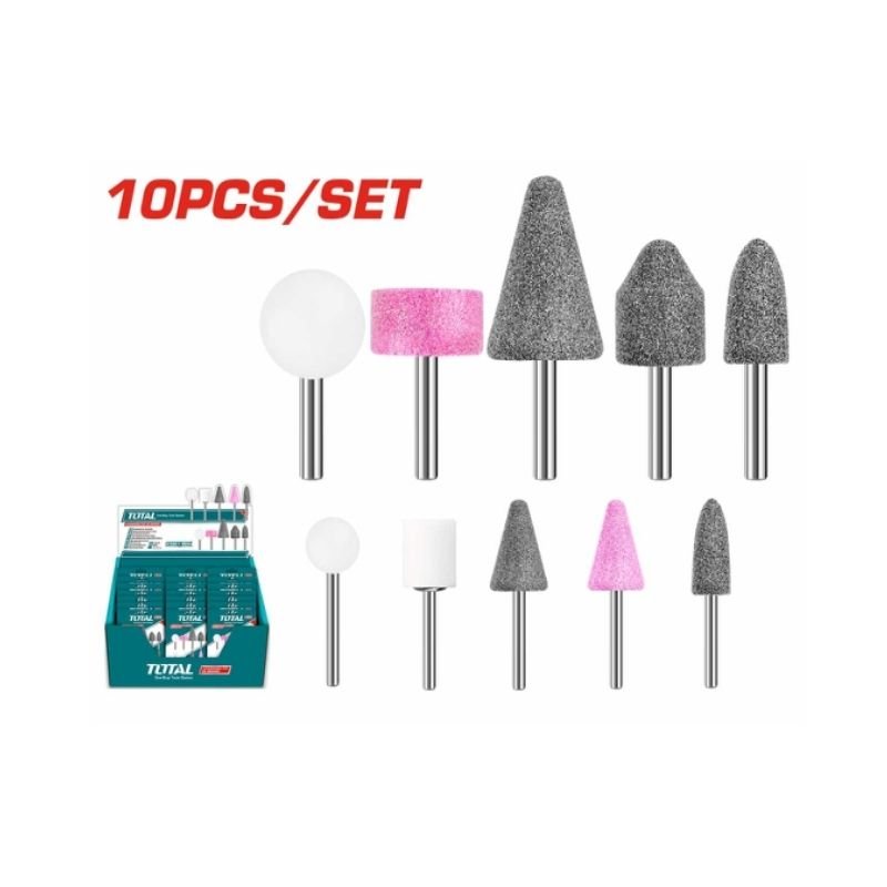 Accessories for die grinder and mini grinder. 5 Pcs grinding burrs for die grinder. Shank diameter: 6mm. Suitable for TG55061. Include: 1 PCS cylindrical 19 × 26mm. 1 PCS bullet type 14 × 25mm. 1 PCS cone 25 × 38mm. 1 PCS T-type 25 × 13mm. 1 PCS round 23 × 24mm. 5 Pcs grinding burrs for mini grinder. Shank diameter: 3mm. Suitable for TG55062. Packed by sliding card.