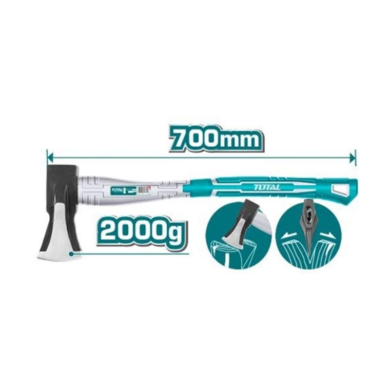 Weight: 2000g, drop-forged axe head more conducive to firewood cutting, heat-treated 45# carbon steel, fiberglass handle, packed by label.