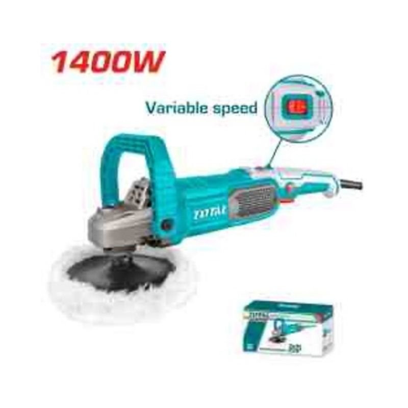 Voltage: 110-120V~50/60Hz, input power: 1400W, no-load speed: 1500–3600rpm, polishing pad diameter: 7″, spindle type: 5/8″-11 UNC, variable speed control, lock-on switch, aluminum gear box. Include: 1 D-handle, 1 hook & loop polishing pad, 1 polishing bonnet, 1 set extra carbon brushes, 1 hex key. Packed by color box.