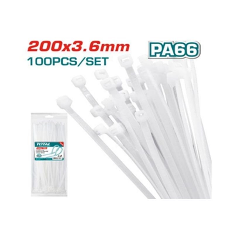 Color: White. Material: Nylon 66. Length: 200mm. Width: 3.6mm. 100 pcs.