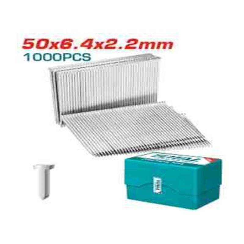 Length: 50mm, 1000pcs/plastic box, nail head 6.4mm × 2.2mm, shank diameter 2.2mm, packed by plastic box.