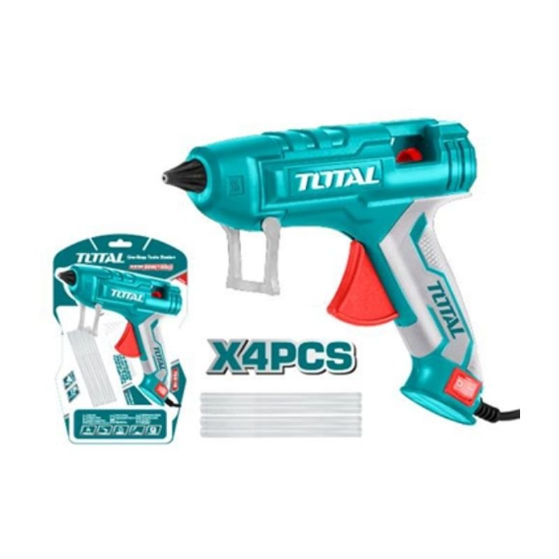Volts 110–120V~50/60Hz, input power 25W (150W), gluing capacity 15–20g/min, glue stick diameter 11.2mm, includes 4pcs 150mm glue sticks, packed in double blister.