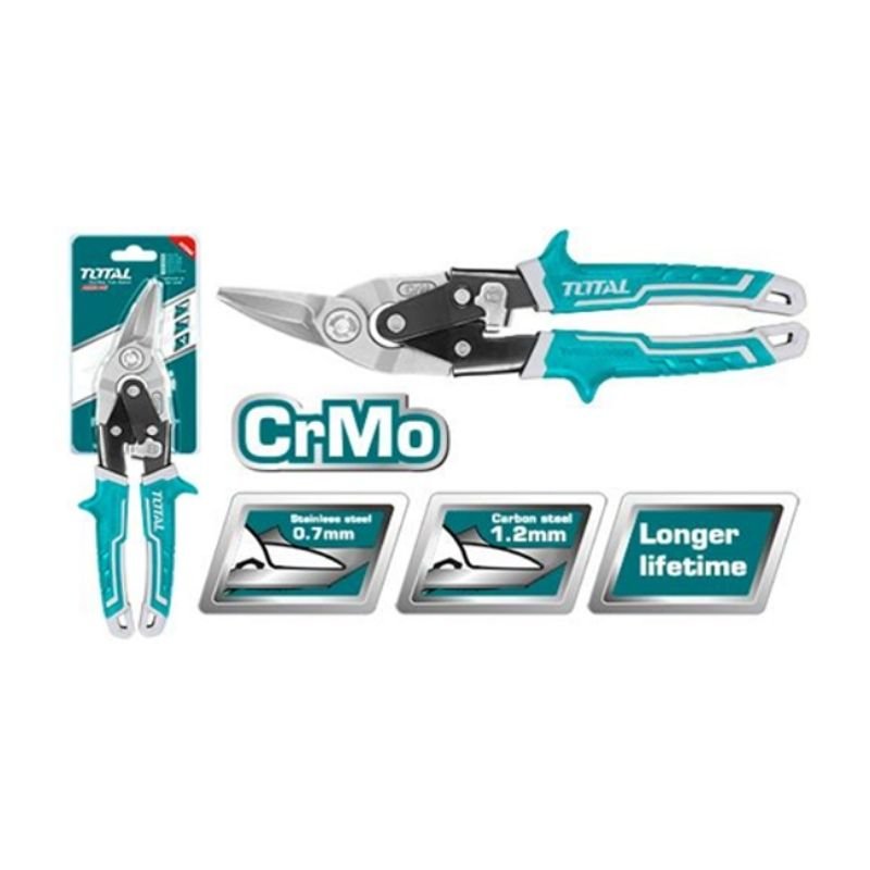 Unique design two-tone soft handle, aviation snip (left), length 250mm (10″), max cutting thickness: carbon steel ≤1.2mm, stainless steel ≤0.7mm, packed by half double blister.