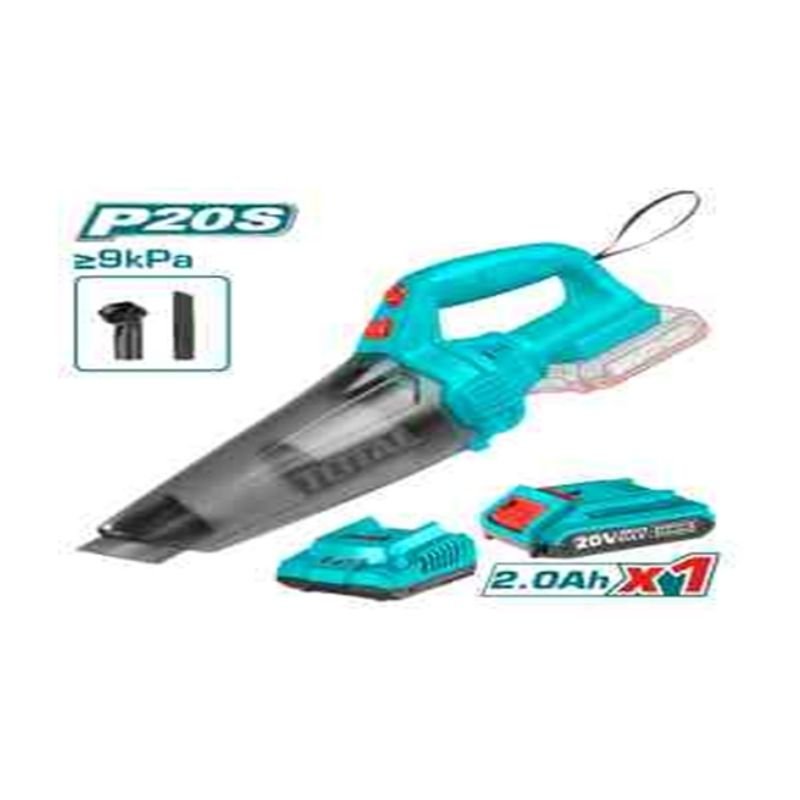 Voltage:20V Dust capacity:0.5L Vacuum pressure:>9kpa Include:1 pcs 2.0Ah 20V battery pack, 1 pcs fast charger, charge volts 110-120V~50/60Hz, 1 pcs battery pack, 1 pcs crevice nozzle, 1 pcs dust brush with soft bristles, packed by color box.