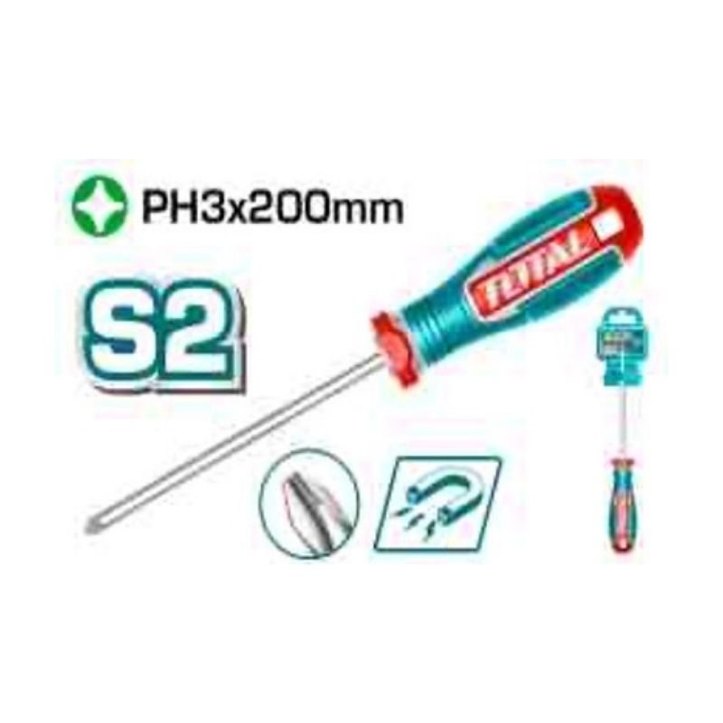 Blade material: S2, tip type: phillips PH3 (magnetic), blade length: 200mm, blade diameter: 8.0mm, shank type: round, handle material: three-color ergonomic, with strong magnetic, supplied as 1pcs screwdriver with 1pcs plastic hanger and packed by plastic hanger.