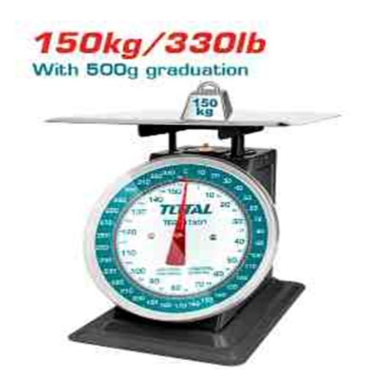 Max weight 150kg with 500g graduation, dial plate display, stainless steel bowl with 335mm diameter, packed by carton box.