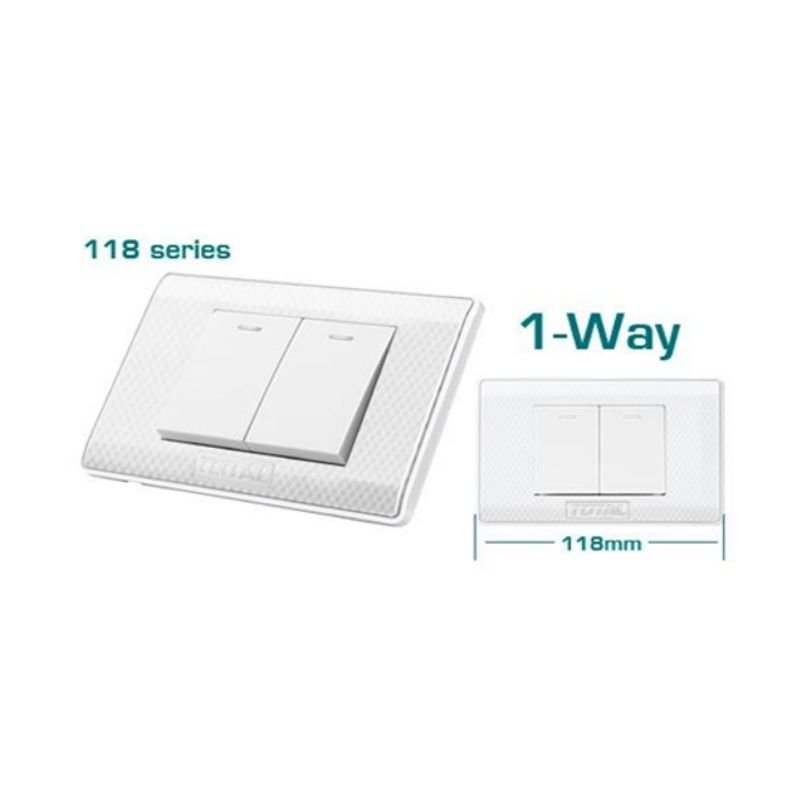 Product size: 118 × 80mm Installation size: 84mm 2-Gang 16A 250V~ 1-Way Packed by plastic bag.