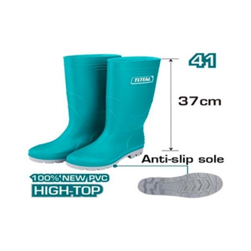 Size: 41. Material: Virgin PVC/Nitrile. Height: 39cm. High-level oil, acid, and alkali resistance. 100% waterproof. Packed by poly bag.