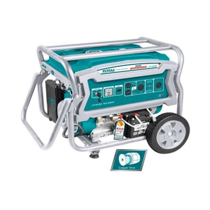Rated voltage(V): 110-120/220-240, rated frequency(Hz): 60, max output(kW): 8.0, rated output(kW): 6.5, rated speed(rpm): 3600, engine: 4 stroke, OHV, displacement(ml): 420, cooling system: air-cooled, ignition system: T.C.I, starting system: recoil+electric, copper wire alternator, fuel tank(L): 25, dry weight(kg): 89, with 1 set auxiliary handle and wheels, packed by carton box.
